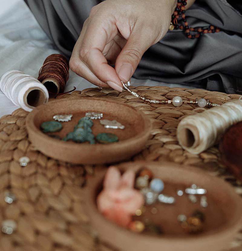 Meticulous bead selection, precise drilling, and skillful weaving—each step embodies craftsmanship. Through blending traditional techniques with contemporary aesthetics, scattered beads transform into refined handcrafted pieces imbued with cultural significance and artistic value.