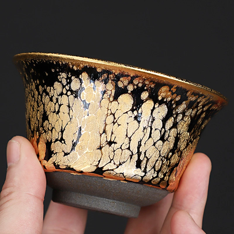 Tenmoku glazes have high iron-content, creating rich colors and shiny surfaces. When fired, the iron forms patterns like oil spots or streaks, giving each piece a unique look.