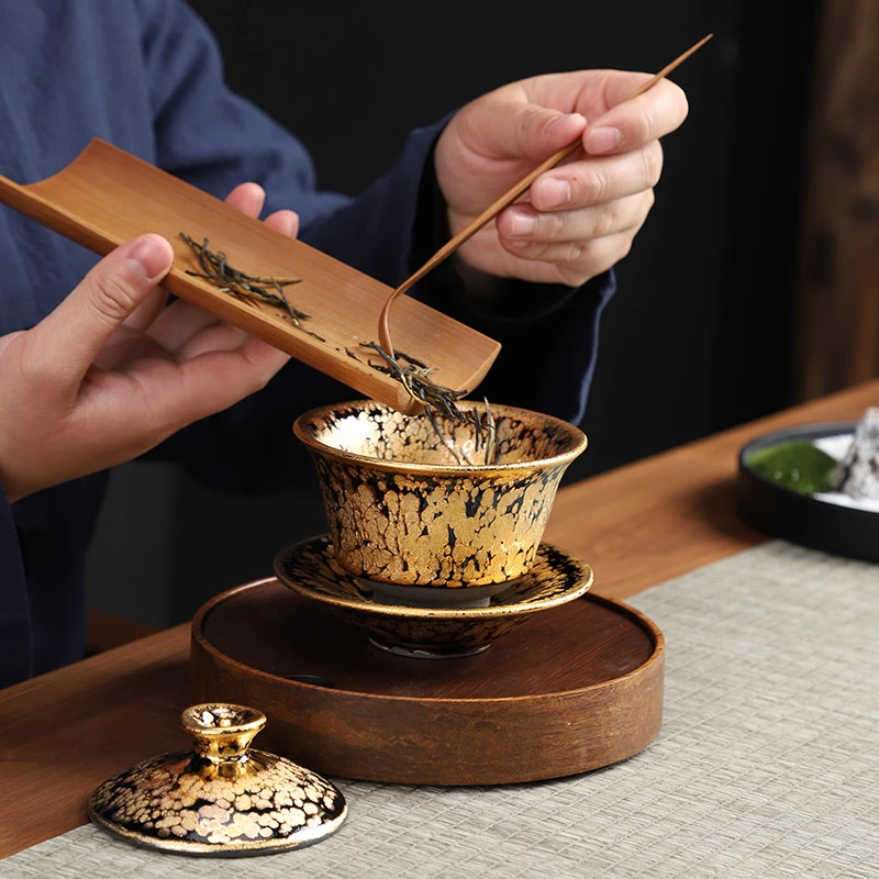 A complete tea set for tea lovers! This luxurious set includes everything you need to brew and enjoy the perfect cup of tea with ease and precision. It includes a ceramic gaiwan teapot, a ceramic strainer, a high-end ceramic tea bowl, and six ceramic teacups. Everything is luxuriously packaged in a beautiful gift box that will delight anyone who opens it.