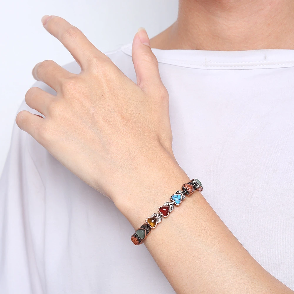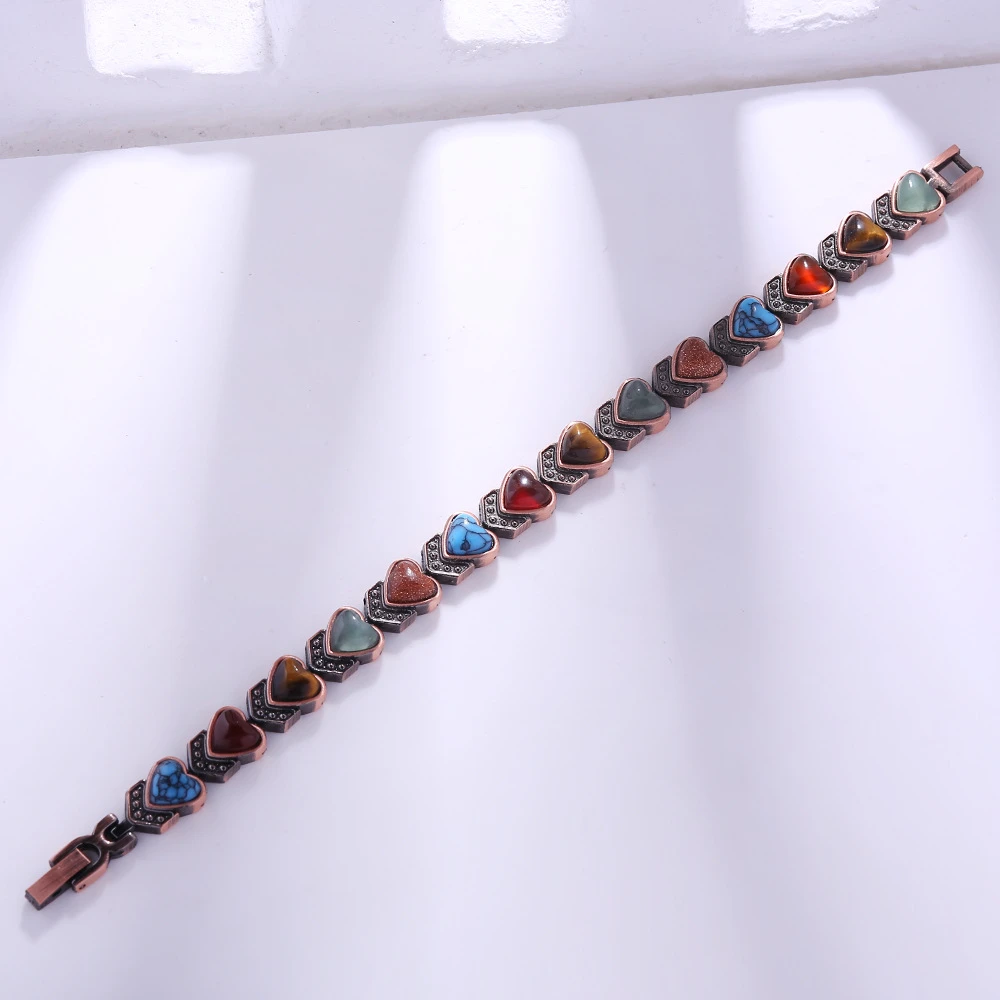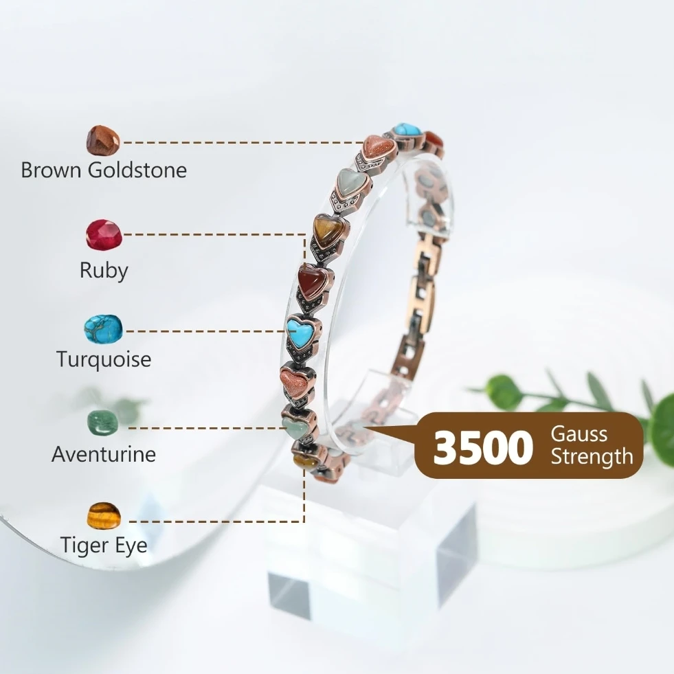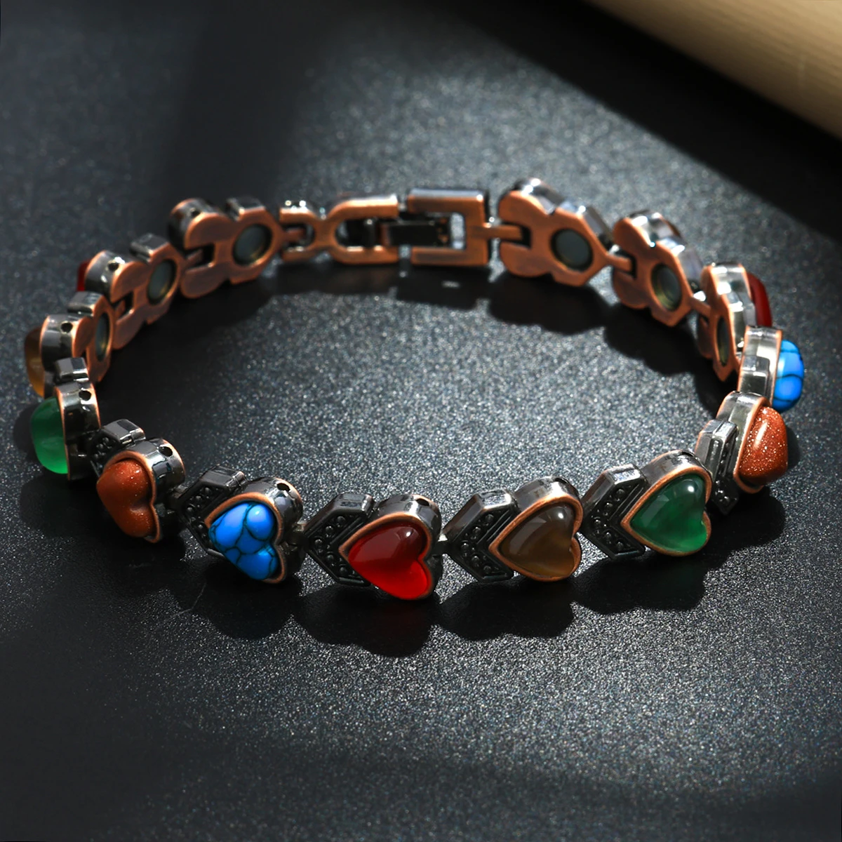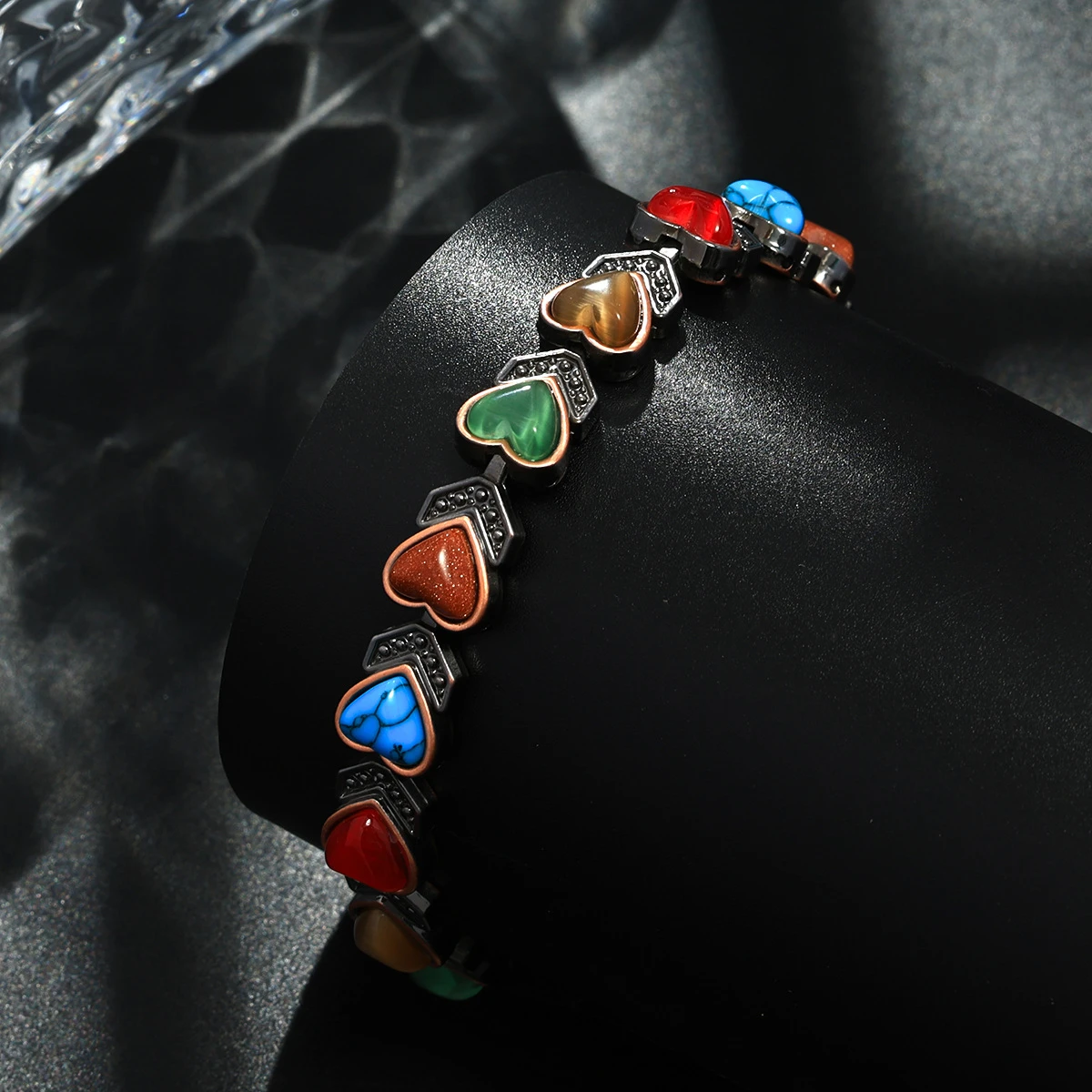 This magnetic bracelet is meticulously handcrafted with a heart-shaped turquoise gemstone and premium pure copper for exceptional strength and durability. Harnessing the natural benefits of magnetic fields, the bracelet stimulates your body's healing abilities, helping to alleviate discomfort and enhance overall well-being, allowing you to explore the power of magnetic therapy.