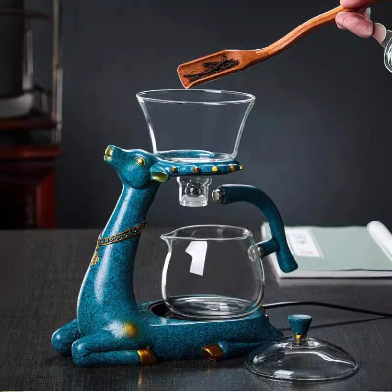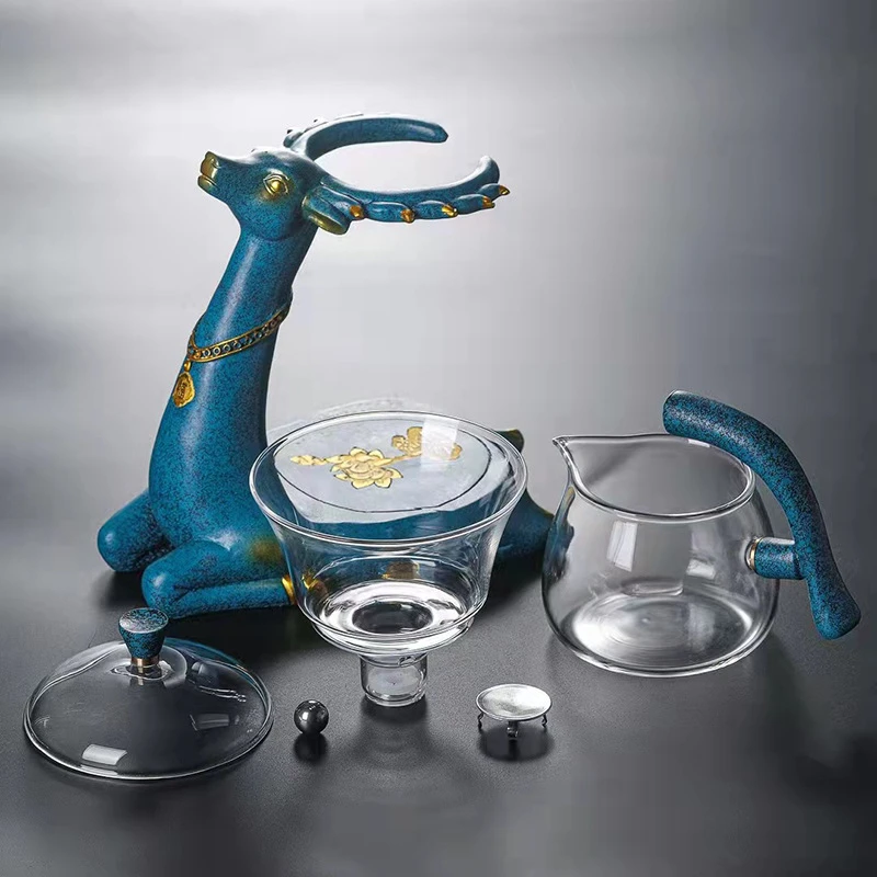 High-Quality Materials: This exquisite tea set is crafted from high-borosilicate glass. The clear, transparent body captures the richness and layers of each tea. The carved ceramic deer base provides not only a stable support but also a work of art that adorns the tea table, imbuing every tea tasting with a sense of ritual.