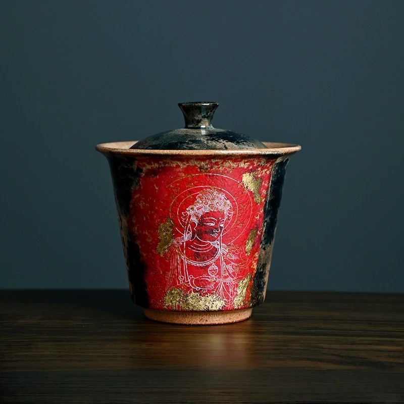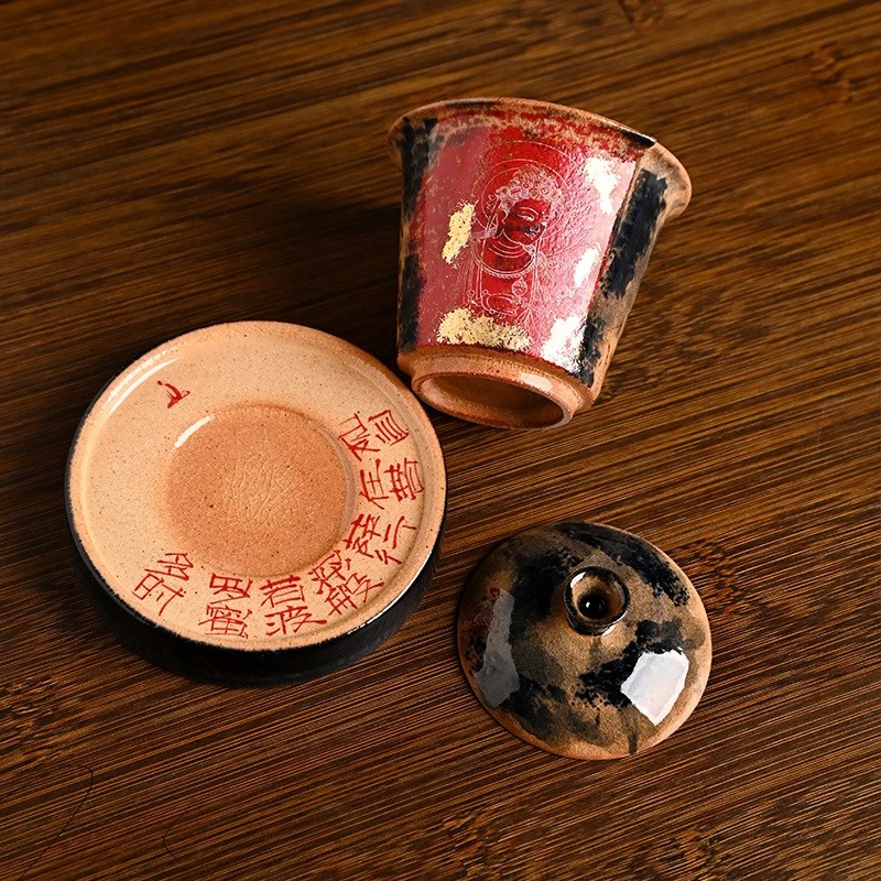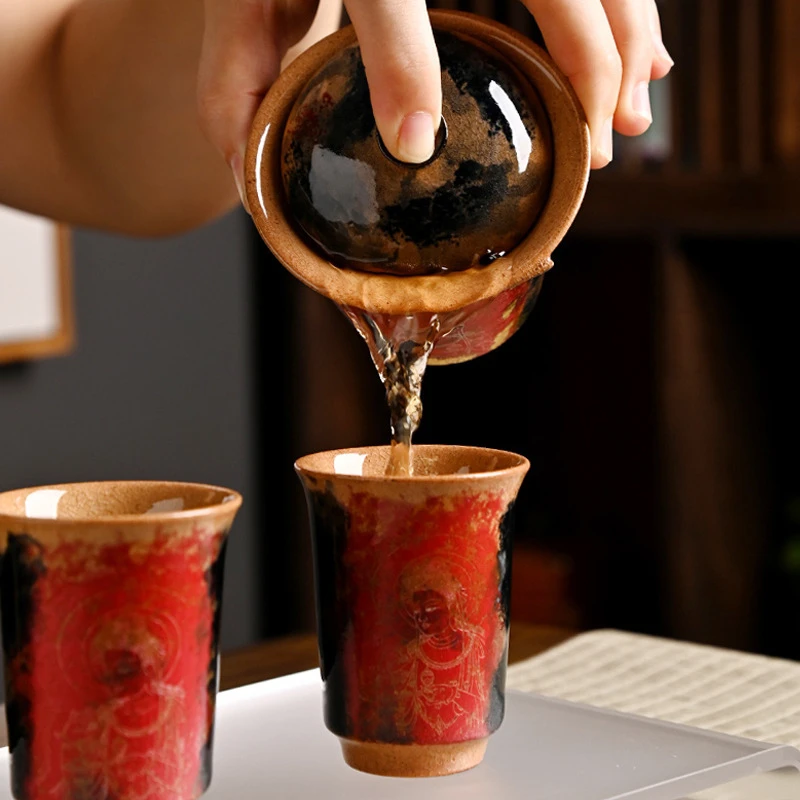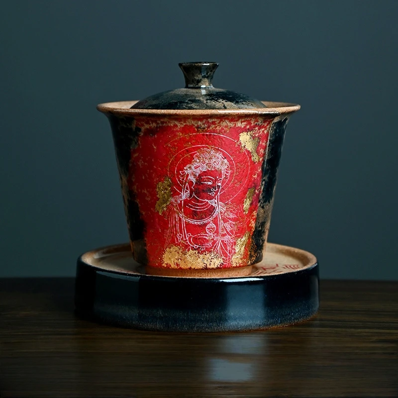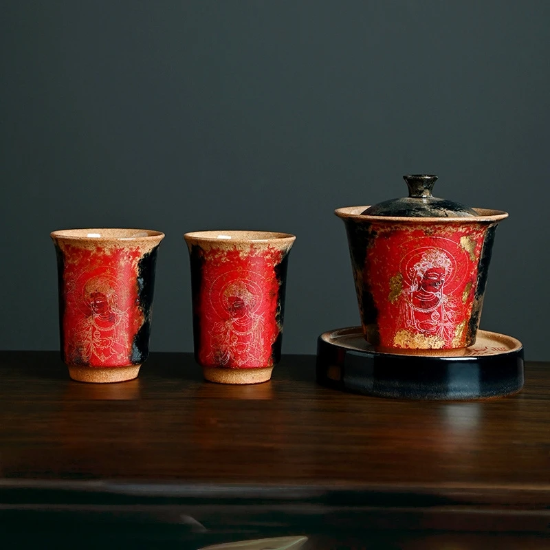 Inspired by the Eastern philosophy of "Zen and tea are one," this Buddha-themed gaiwan tea set blends the symbolic power of red, black, and gold.