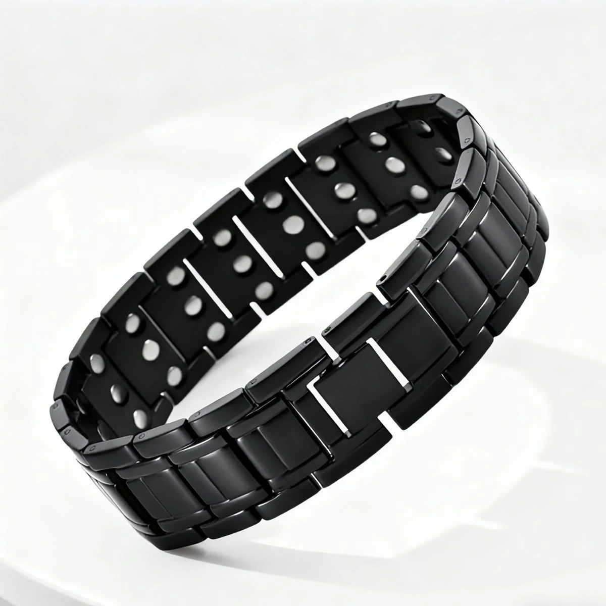 This men's copper bracelet is made from 99.99% pure copper. It's hypoallergenic, lead-free, and nickel-free. Its long-lasting, glossy black lacquer resists oxidation, making it durable, scratch-resistant, and comfortable to wear. This stylish and elegant men's copper magnetic bracelet is perfect for any occasion, showcasing your unique style.
