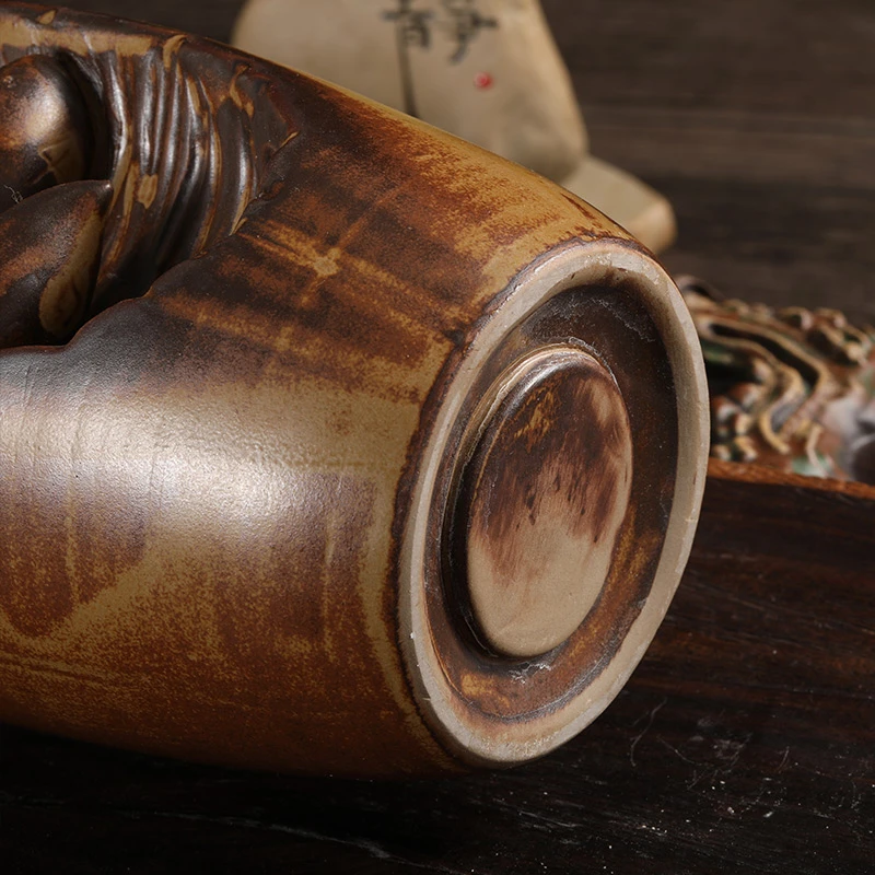 Tenmoku glazes have high iron-content, creating rich colors and shiny surfaces. When fired, the iron forms patterns like oil spots or streaks, giving each piece a unique look.