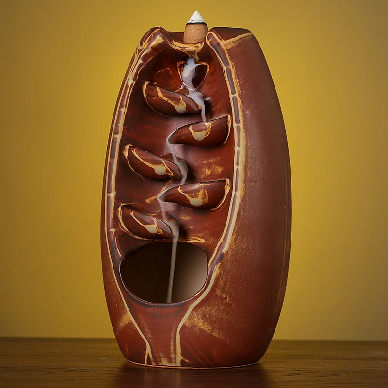 The Mystic Waterfall Incense Burner is a beautiful decorative work of art that can also be used as an incense burner for religious or meditative purposes. Place the backflow incense burner in a windless place, light the incense cone, and after the incense cone produces smoke, place it on the incense burner. You will get a beautiful waterfall of smoke, which will become a unique corner of your incense burner.