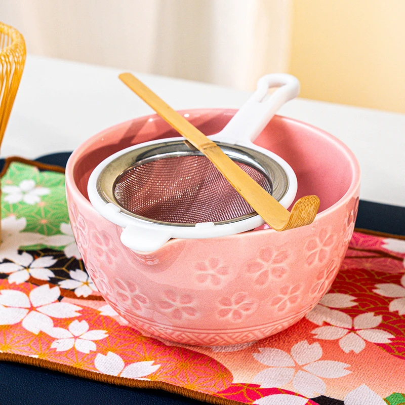 Complete Matcha Set Contents: This set includes all the necessary tools for authentic matcha preparation, including a bamboo matcha whisk, bamboo tea spoon, spoon stand, stainless steel tea sieve, a 530ml/18oz ceramic matcha bowl, whisk stand, cherry blossom-patterned tea towel, and user manual. Each piece is meticulously polished, allowing you to effortlessly experience a stylish and authentic matcha experience.
