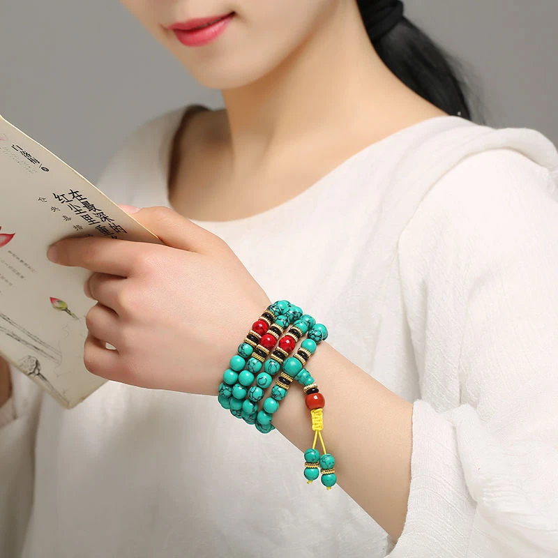 This turquoise rosary bracelet is more than just a refined, natural accessory; it's a mindfulness tool designed for modern living. It combines the protective energy of turquoise from Native American culture with contemporary meditation practices, helping you maintain inner balance and find moments of peace amidst the hustle and bustle of everyday life.