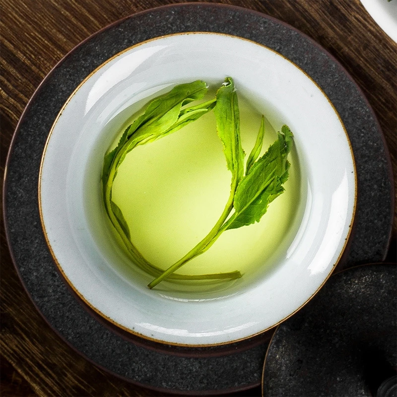The delicate aroma and clear, transparent tea of Houkui tea foster a sense of calm and awareness during brewing and sipping.